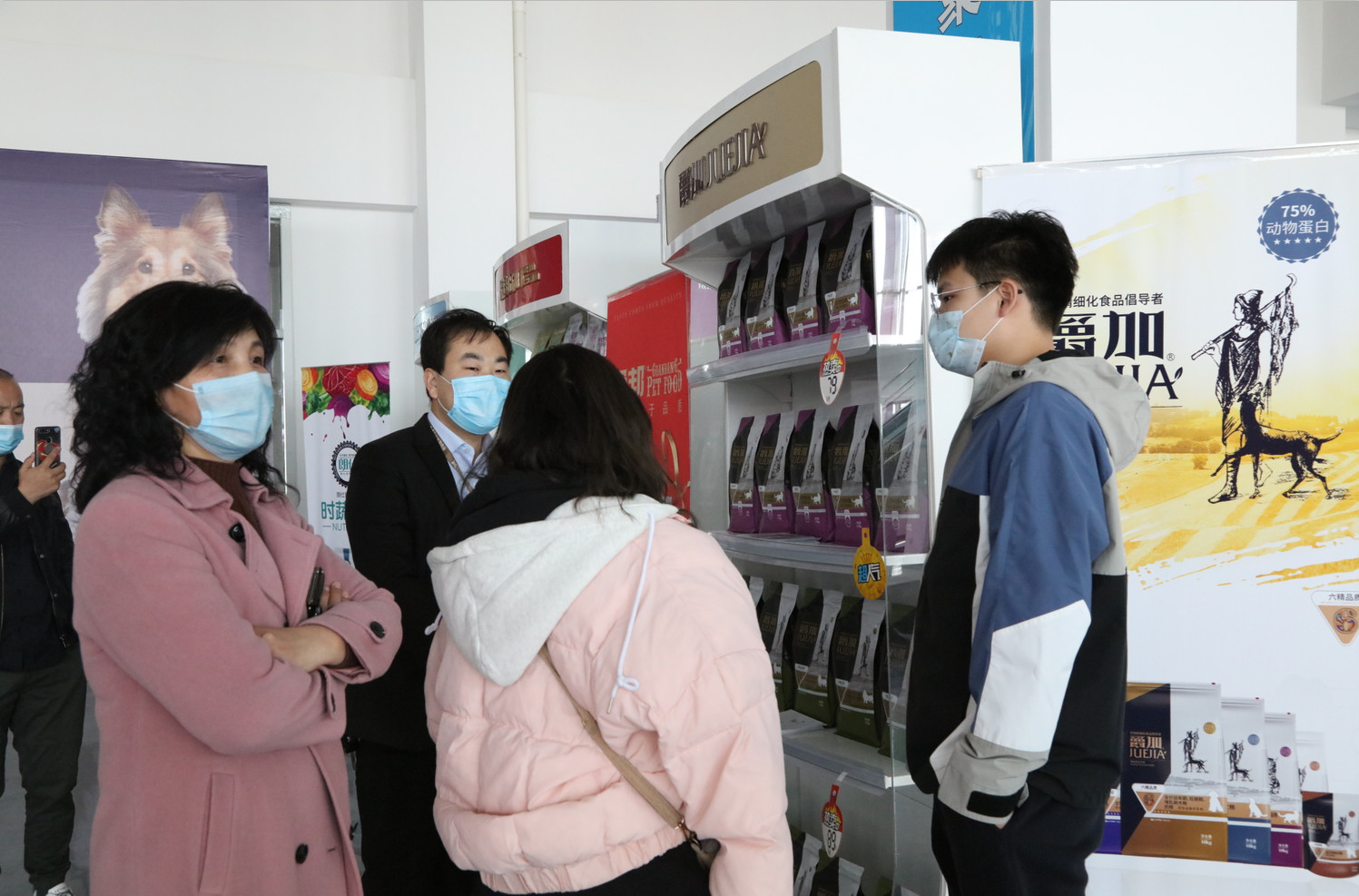 會展中心正門口便是華興寵物食品的展位,剛開展就已經有顧客開始參觀咨詢。